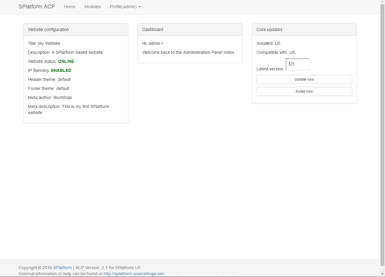 Info: SPlatform U5 it's the first SPlatform wich adds a better configuration file and re-adds the Maintenance option.